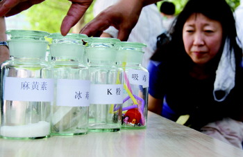 26日,市民在禁毒宣传展台前仔细查看毒品样品。 本报记者 王小会 摄