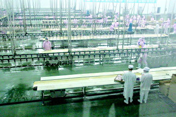 这么多养殖户养殖鸭子丝毫不用担心销路,他们将全部肉鸭供应给华英禽业。据华英禽业常务副总胡龙喜介绍,公司严格实行标准的“公司+基地+农户”发展模式。现有200家肉鸭养殖户为企业供货,每年可加工3000万只肉鸭。