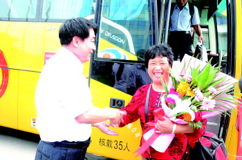 员工家长们从总经理王常申手中接过送上的鲜花,公司还准备了接风宴。据了解,这是公司为褒奖员工而采取的措施之一。为褒奖员工的突出贡献,2010年公司曾一次性褒奖车间主任以上员工共计轿车12辆。