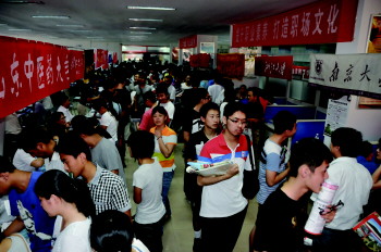 由本报主办的滨州市首届高考招生大型室内咨询会(综合场)在政通人才市场成功落幕,省内外160余家高校参加,万名考生及家长入场咨询,近800名考生与学校达成初步预录取意向。7月28日,本次招生咨询会高职场还将在政通人才市场如期举行。如果你想成为一名拿高薪、好就业的高职生,千万别错过7月28日的高职专场。图为高招会现场。 本报记者 张凯 李运恒 摄影报道