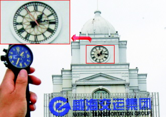 在威海火车站、海港客运站、阳光大厦楼顶,各有一处大钟,这些大钟目前都准点运行。