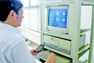 这名工作人员带记者来到控制塔钟的办公室。记者看到,一台老式电脑控制钟塔的运行,四个方向的钟表中都有一个电机,在电脑上设置好时间,塔四面的钟表就会跟着电脑的时间走。
