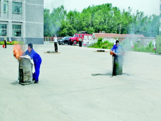 6月25日,在经区消防崮山中队,中石化威海石油分公司举行了年度消防演练会操,来自乳山、文登、荣成及各市区的8支参赛队、50多人参赛。利用8公斤干粉灭火器,各参赛队伍参加了地面油池火、石棉被灭油桶火两个项目的比赛。