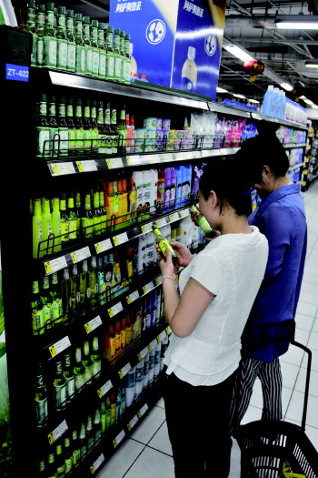 ◤张店一大型超市内市民在选购驱蚊花露水。 本报记者 王鸿哲 摄