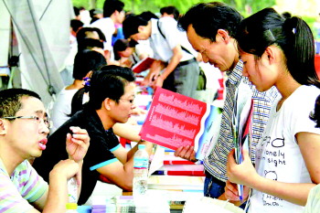 26日,本报主办的山东省高考招生咨询会聊城分会场在水城明珠大剧场拉开大幕,咨询会现场火爆,家长和考生把各个咨询台挤得水泄不通。不少招生人员一入场就被考生和家长纷纷“包围”。有不少考生一早从外地赶来咨询。图为学生及家长在现场咨询。