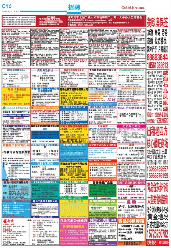 第Q16版:今日青岛·招聘