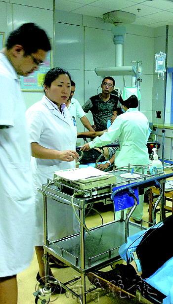 一天工作超过10个小时,没有周末节假日,在每天繁琐的工作中,在病人或其家属时而的误会中,治好病人仍是医生们心中最大的幸福。6月26日是医师节,记者走进章丘市人民医院120急诊中心,体验了急诊室的一天。 >> 干急诊,受委屈是常有的事 早上8点半,记者来到120急救中心的大厅,看到多名医生、护士在急诊室和观察室之间不停地穿梭。一进门左手边整齐地摆放着6张急诊病床,像是随时待命的战士,给人一种肃然起敬的感觉,毕竟曾经呵护过无数个生命。 正对着大厅门口的是护士站,两名护士正在一边拿笔记录,一边接听电话。从护士站往右三四米的位置就是内科诊室、外科诊室和抢救室。在内科诊室,正在接诊的是曲海虎、张峰、朱素娟三名医生,还有一名护士,医生正在忙碌着与病人交流病情,护士则在一旁配合医生做检查。 9点左右,记者已经在诊室里站了近半个小时,张峰医生才发现有“生人”到访,他笑着说:“病人太多了,忙得抬不起头来。”得知记者因医师节体验急诊室生活时,曲海虎医生才意识到当天的特殊意义。当记者问其节日怎么过时,曲医生和张医生的回答同样都是“正常上班”。 9点25分,来了一位糖尿病人。其家属说,病人从早上开始就说不出话来,意识模糊。张峰医生查看病人后,发现他已经没办法正常交流,急忙将其推往抢救室,在抢救室内做了心电图,没有异常;随后由陪检人员护送做了脑CT,初步诊断为脑出血,马上收入院进行治疗。 张峰对记者说,这样的病患急诊室每天平均要接四五十例,“我们只能尽自己最大的能力让病人减轻痛苦,让家属放心。”张峰是急诊中心的副主任,从1996年毕业就开始干急诊,对于这样的心理压力已经是习以为常了。“因为我们急诊接待的都是一些急症患者,他们情绪很激动,有时态度不好,挨骂是常事,我们要调整自己的心态,做好安慰工作。” 护士张帆在急诊工作时间不长,但有一件事让他印象深刻,“有一次出车接一个哮喘病人,病人喘得厉害,家属着急,怪我们速度慢,张口就骂,我们也只能调整自己,继续抢救。”