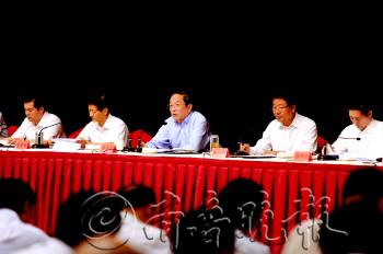 29日,俞正声在新疆干部大会上就维护新疆社会稳定传达中央有关精神。 新华社发