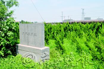 | 大辛庄遗址已列入国家级重点文物保护范围。图为立在草丛中的遗址纪念碑。 本报记者 王僖 摄 |