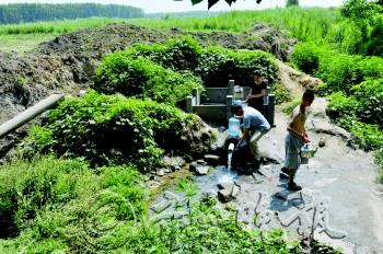| 来白泉取水的附近居民。 本报记者 郭建政 摄 |