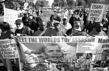 | 28日,南非比勒陀利亚,民众举行集会抗议奥巴马访问南非。 |