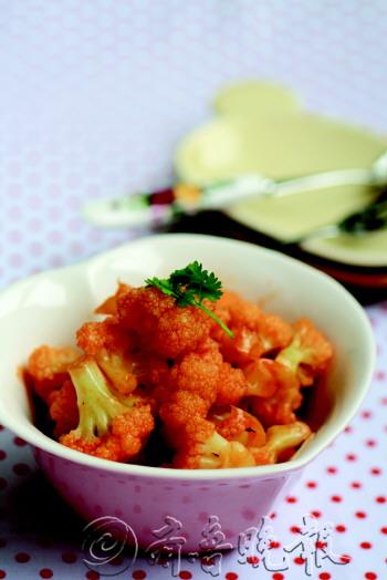 酸酸甜甜的味道是小孩子的最爱。加入了番茄沙司的菜花,顿时从没有味道变得酸酸甜甜,美味加倍。
