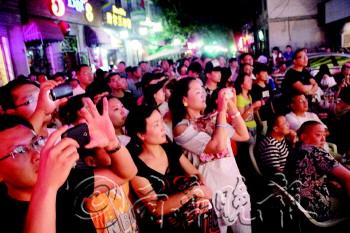 13年后,烟台老牌乐队船长乐队和另外9支乐队终于在朝阳街又举办了一次以“拒绝毒品”为主题的长达4小时的音乐节。6月29日夜,烟台这个海滨城市凉风习习,伴随着美食,啤酒,站在朝阳街老巷子里挥舞着手臂的几百名观众和来往的行人,和乐队一起把这个夜晚点燃。 10支乐队演出4小时 6月29日晚上6点钟,朝阳街船长酒吧门前的小广场和两侧的街巷已经被观众“占领”得水泄不通。一个个小桌上摆满了各种吃食,啤酒、饮料,人们交谈等待,穿梭过巷的人来来往往,嘈杂又热烈。在那个方方正正舞台背景上,“拒绝毒品”四个大字最为醒目,无疑这是这晚除了音乐,乐队们最想传达的。 十几分钟后,伴随着一阵嘈杂又爆裂感的音乐,第一支乐队兄弟登台了,歌者一嗓子点燃了这一整晚的热情。在兄弟之后,36人、雨露、指弹、海帆、中央公园……在长达4小时的演出中,一首首歌从民谣到摇滚,从乡村到蓝调,歌手们都卖力而投入,唱跳得大汗淋漓。 轮番登场即兴参演 “一直有新的乐队要求上来即兴演出。”来自烟台大学的女孩张悦腾告诉记者,因为台下坐着的观众里有很多都是烟台各支乐队的人,音乐响起的时候,很多人早已按耐不住了,吃完喝完干脆上台唱一嗓子。 “小菜鸟”是其中一只临时加演的乐队,上台后这几个还显得青涩的小伙子唱起了beyond的歌,“30日是黄家驹去世30周年,我们这刻很想唱一首他们的歌。”《光辉岁月》响起,台下无数的手臂高高举起,用力挥舞…… 有白米饭带来的小清新《彩虹》,也有多位中外音乐人在台上即兴用鼓、贝斯、吉他合出来的音乐,最热烈的时刻来自于船长乐队登台的时候。台下爆发出一阵阵的呼声,“坐了一晚上的可以站起来了!”船长号召下,一排排观众亮起了手中的手机,像一支支烛火浮在夜里,《过火》、《close to you》……船长的歌声浑厚独特,回荡在朝阳街的夜里。 韩国乐队助阵,将参加“好声音” 当晚的音乐节,“雨露”是唯一一支来自外国的乐队,它的2位成员成真元和吴雨露都是韩国人。当晚他们所唱的3首歌都是英文歌,但是有趣的是,这些年来他们所热爱所练习的都是中文歌。 “我们刚刚参加完《中国最强音》。”成真元告诉记者,他很喜欢中国,他希望自己能把中文歌唱到韩国和世界各地去。目前雨露组合已经接到了最新一季《中国好声音》的邀请,他们正在加紧练习,准备去参加比赛。 □现场 现场太high 引得“老外”也来跳一曲 “这是十几年后我们再次举行拒绝毒品的音乐会,所以我们用《从头再来》作为第一首歌,希望能把我们烟台本土的音乐推向一个新的高峰。”船长乐队赵进说。 29日晚,“拒绝毒品”音乐节现场挤满了前来观看的市民,跟着台上乐队大声合唱、不断挥舞手电筒摇摆,现场热浪一阵高过一阵。台上乐队唱到动情处,乐手斗琴和乐,台下观众的情绪也被调动到了极致,听到动情处,老外拉着女伴直接在人群中舞动起来。 晚9点左右,在烟台工作的swen拉起女伴伴着音乐在人群中舞动起来,大汗淋漓地跳完,俩人又和朋友共同为台上的歌手举杯。“very good",swen连连称赞当晚的演出乐队。 此前,在去年本报星空音乐汇上,听到动情处,swen还跳上台献歌一首,为本土音乐助阵。swen称很期待本报的下届音乐节,到时他一定还会参与其中。