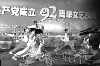 6月28日晚,由东港区委组织部、东港区委宣传部主办,东港区直机关工委、东港区文体新局承办的东港区庆祝中国共产党成立九十二周年文艺晚会在区政府广场举行。晚会现场表演了歌舞《中国美》、经典诵读《中国梦,我的梦》、独唱《最美的赞歌献给党》歌伴舞《走向和谐盛世》等节目。