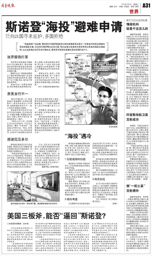 斯诺登“海投”避难申请