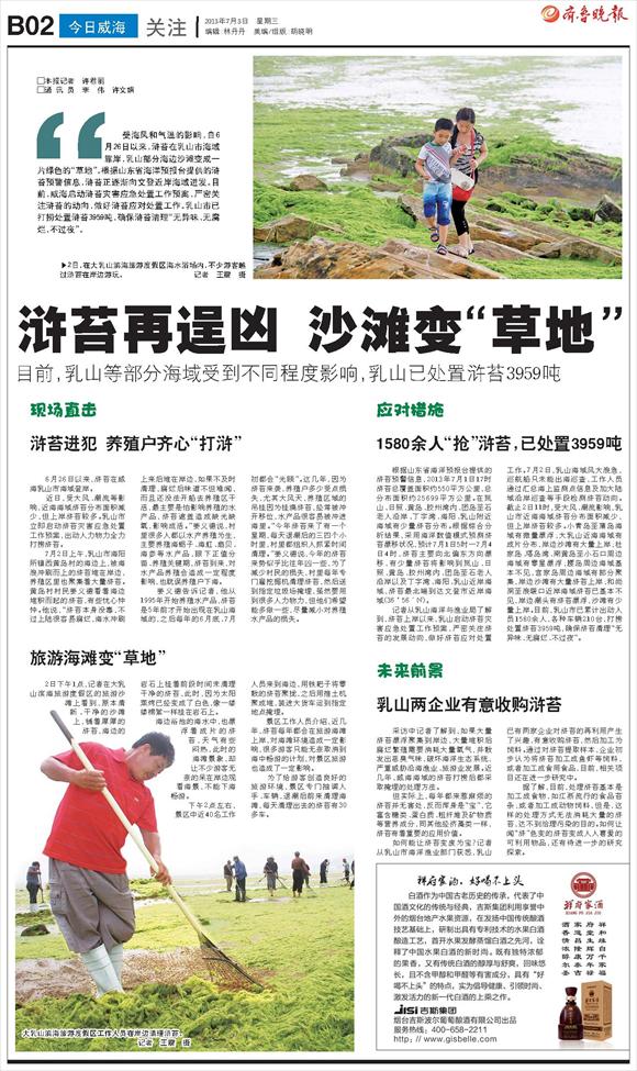 浒苔再逞凶 沙滩变“草地”