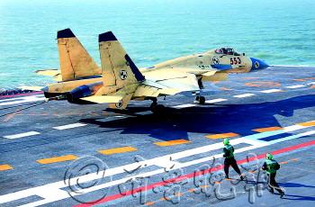 我国第一艘航空母舰辽宁舰顺利完成预定科研试验和训练课目,7月3日返航停靠青岛某军港。在这次为期25天的航行中,我国首批舰载战斗机飞行员和着舰指挥员通过了航母资格认证,中国成为世界上少数几个具备自主培养舰载战斗机飞行员能力的国家。