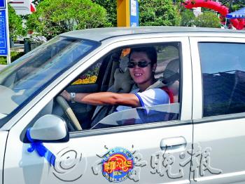 | 爱心顺风车队队员的私家车上都贴有他们车队的标志。 |