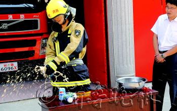 本报记者 陈玮 尉伟 夏日炎炎,不少市民选择冰镇可乐解暑。但此前,上海有市民因开启冰冻可乐后产生爆炸,从而导致脸部受伤的事件引起了不少市民关注。冰冻可乐到底会不会爆炸?记者与本报实验员孟兆军联合济南公安消防泉城广场中队进行了实验。 实验一: 可乐冰冻18小时开启 只有少量液体溢出 3日下午,在济南公安消防泉城广场中队门前广场,消防员穿上专业装备后,与孟兆军一起进行实验。记者拿出在冷冻室冰冻18小时的听装可乐,发现罐体已经冻得十分坚硬,按压之下没有发生任何变化,罐体明显肿胀,头尾原本凹进的部分都被顶起。 消防员先拿起一听可乐,打开拉环,有少量液体溢出,罐体完好无损。“可乐已经被冻成一个整体了,我觉得摇晃以后应该会发生爆炸。”孟兆军猜测。随后,消防员将一听可乐剧烈摇晃了七八下,拉开环后,有液体泡沫从开口处冒出,但量并不多,仍然未发生爆炸现象。