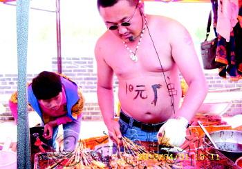 自述:摊主的人体广告,“7”写反了。