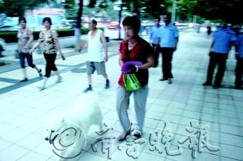 入夏以来,济宁城区违章养犬现象有所反弹,为保障市民人身安全和生活不受侵害,济宁市公安局决定于7月3日至7日,对城区违章养犬开展集中清理活动。3日晚7点30分,记者跟随高新区公安分局民警在新世纪广场执法过程中看到,不少市民在不为犬只拴链子的情况下遛狗,其中不乏城区禁养的大型犬。面对民警的劝导,几乎所有遛狗者都慌忙牵狗离开,并没认识到潜在的危险。 直击现场>> 违规遛狗现象,非常普遍 3日晚上7点30分,记者跟随高新区公安分局治安大队民警来到新世纪广场。此时,广场上前来散步的市民很多,民警沿广场外围展开巡逻。当民警走到广场西南角时,一位中年女士马上转身离开,身后还牵着一条小狗,民警追上去将其拦住。“今天第一次来,我家不住这边。”女士赶紧解释称。 “您好,广场区域禁止遛狗,请您离开。”7点37分,一条白色萨摩耶沿着花坛朝民警走来,其身后两三米处跟着一名中年妇女,手里还攥着一根狗绳。面对民警的提醒,该女士却并不以为然,甚至连脚步都没有停下,从民警身旁直接走过。民警赶紧追上去,劝说女士给狗带上绳索,女士始终一言不发,很不耐烦地将绳索套上,然后牵着狗走了。但没走出十米,她又把绳索解了下来。 一旁,广场清洁工人正在绿化带内打扫卫生,垃圾袋里除了落叶就是狗的粪便。“每天我们都能清理十几袋这样的垃圾,有时我们去劝阻,反而遭到遛狗的市民的责骂。”清洁工刘女士很委屈,她在新世纪广场工作已经十年,每天早上4点半就来到广场打扫卫生,但刚打扫干净很快又被宠物狗弄得一片狼藉,尤其是在早上,这种现象更严重。