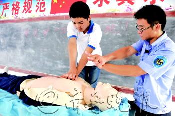 本报济宁7月3日讯(记者 李倩) 如何让孩子们安全地度过暑期?3日,由本报《今日运河》编辑部等单位主办的“救”在身边公益行动活动走进市中区安居二中,这是这项公益活动的第4站。针对夏季易发生的溺水、中暑、雷雨、大水、蜂蛰伤等意外,院前急救人员手把手地把这些知识传授给学生们。 3日上午,天气十分闷热,在安居二中教室里,几百名中学生听得津津有味。济宁市第一人民医院院前急救人员李少卿认真地给学生们示范心肺复苏的动作要领。他一连做了5个轮回的心脏胸外按压和人口呼吸,为学生演示急救现场施救全过程。 初步掌握动作要领后,李少卿邀请一名学生上台操作。“你看,你看,模拟人的胸廓鼓起来了。”在演练环节,初中二年级的学生杨志明第一个走上讲台,在急救人员的指导下,他的心脏胸外按压和人工呼吸动作做得十分标准。 有了第一个“吃螃蟹”的男同学,初三的女生谢晓淳也不甘示弱。她大步走上台,根据专家的指导,她轻拍“患者”的双肩,分别对“患者”双侧耳朵呼叫:您怎么了!您怎么了!看“患者”无反应,她立刻触摸颈动脉(喉结旁开2厘米),查看有无搏动。同时,她的眼睛看胸廓有无起伏,耳朵听有没有呼吸气流,并轻数1001、1002……,她的动作持续约5-10秒钟。 5月至9月是学生意外溺水事故的高发季节,安居二中紧邻大运河,周边有不少河道,暑期有很大的安全风险。在现场,院前急救人员崔保辉重点为学生们讲授意外落水后如何自救,他说,落水后不要心慌意乱,可以采取仰面位,头顶向后,口向上方,这样口鼻可露出水面进行呼吸。呼气宜浅,吸气宜深,这样就能使身体浮于水面,等待他人抢救,千万不可将手上举或挣扎,这样反而易使人下沉。 “每年暑假,最担心的就是学生的安全问题,为此学校也采取多种措施,时刻提醒学生注意安全。通过急救专家进课堂这个形式,更好地提升了孩子的各种应急急救、逃生技能,对中学生来说是一堂非常实用的实践课。”市中区教体局的相关负责人表示。 市中区安居二中校长尹传卫说,专家细致地讲解、手把手地施教,提升了学生们的技能,不仅可以防患于未然,面对突发意外时,也能更好地保护自己、帮助他人。 “救”在身边公益行动由本报联合济宁市卫生急救指挥中心、济宁市第一人民医院联合推出,活动结合季节、疾病特点、突发事件等情况,走进不同的群体,通过急救知识技能培训活动,让更多人掌握自救互救常识,提高公众应急技能。