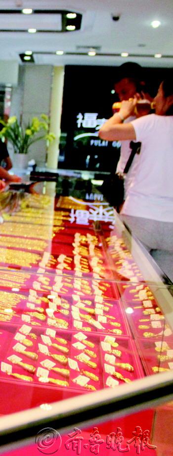 |  | 市民在金店挑选金饰品。 见习记者 韩逸 摄 |