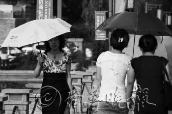 3日,在潍坊市奎文门附近,行人打着太阳伞躲避烈日烘烤。当日潍坊最高气温达到38℃,让人难以忍受。据气象部门介绍,从4日开始潍坊市区气温将会下降。