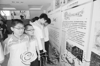 | 3日,世园知识宣传教育活动在青岛63中启动,学生们正在看展板上的世园会知识。