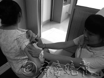 | 在日照市疾控中心,医生在给一名被狗咬的市民打狂犬疫苗,旁边的笔记本上记了不少患者的信息。 本报见习记者 杜光鹏 摄