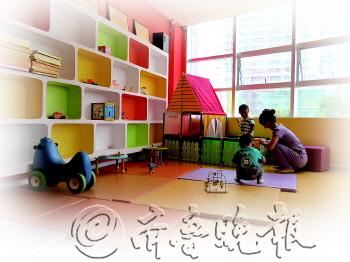 亿婴天使早教的老师和宝宝们开心做游戏。
