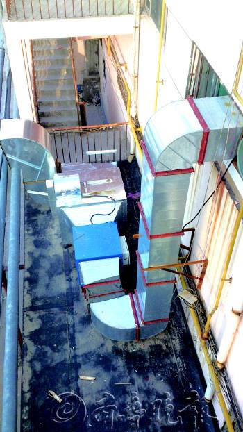 | 发出噪音的大型排气扇通风道。 本报见习记者 李丽娟 摄 |