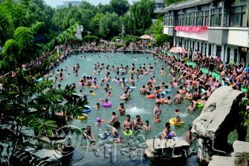 | 泉水浴场里人满为患。 本报记者 赵伟 摄 |