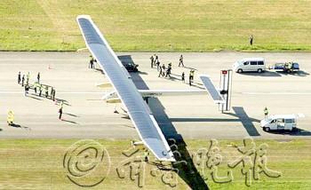 据新华社专电 全球最大太阳能飞机“太阳驱动”号当地时间6日抵达纽约肯尼迪国际机场,结束历时两个月的“美国之旅”。 “太阳驱动”号当天清晨从首都华盛顿起飞。飞行组织方说,“太阳驱动”号于美国东部时间6日晚11时许抵达肯尼迪国际机场。由于左侧机翼下部出现裂痕,飞行路线缩短,飞机提前降落。组织方说,经检测,“太阳驱动”号依旧稳定,能继续飞行,飞行员博尔施伯格也状态良好。 “太阳驱动”号主机翼翼展63米,覆盖大约1.2万块太阳能电池板。这些太阳能电池板白天充电,所存储电量为飞机夜间飞行提供动力。5月3日,“太阳驱动”号从美国西海岸城市旧金山附近出发,自西向东飞行,先后在亚利桑那、得克萨斯、密苏里和俄亥俄等州停留。结束纽约之行后,“太阳驱动”号成为首架不依靠燃料、日夜兼程飞越美国的太阳能飞机。
