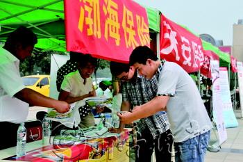 8日,市民在市博物馆广场咨询保险业务。当日,是全国第一个保险宣传日,在市博物馆广场,市内各保险公司举行了集中的宣传活动,向来往市民宣传保险知识。
