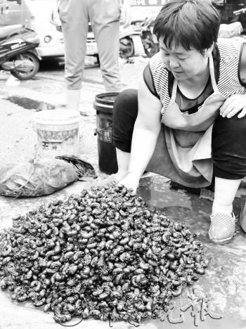 本报聊城7月11日讯(记者 邹俊美) 金蝉一直都是餐桌不可缺少的美味,记者采访了解到,今年夏天金蝉产量比往年少,43元一斤,比去年贵5元左右,创历史新高。饭店里一盘油炸金蝉能卖到60元。 10日早上,聊城交运大市场很多卖金蝉的小摊。“今天的43元一斤。”商贩王女士说。有的一听价格,嫌贵转身就走,但并不影响她生意的红火。“想尝鲜的市民不在乎价格高,刚才一个小伙子买了1000多块钱的。”王女士说,她最大客户是饭店,每天从河南运来300多斤金蝉,一上午就能卖完。一斤金蝉有100多只,平均一只4毛多。“每天凌晨四五点拉金蝉的车都会来到交运大市场,一天销量达5000多斤。”王女士介绍。 火车站南一家金蝉养殖基地的王经理介绍,“往年农户一亩地能出300多斤金蝉,今年最多出200多斤。由于出土量少,供不应求,今年的收购价一直较高,刚上市时达到45元一斤。 记者走访了市区几家酒店了解到,一盘油炸金蝉卖到60元一盘。一盘30多只,平均一只金蝉卖到两块钱。活金蝉大约4.3毛一只,到了餐桌上油炸金蝉价格涨了5倍。