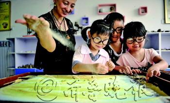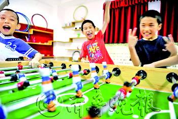 | ▼12日,省城的文文(右二)和小伙伴们一起学习沙画。 |  | ◥12日,在济南市青少年宫,彭沐阳(左)和龚砺剑正在进行击剑训练。 |  | ▲12日,省城一小朋友正在玩桌上足球。 |  | ▲看着许悦摘了朵荷花,弟弟天宝着急地也要摘一朵,被奶奶制止了。 |  | ▼放假后,许悦陪着弟弟在蚊帐里做游戏。 |  | ◤地上画个花瓣,许悦和同伴做起了游戏。 |
