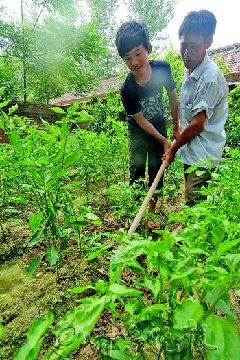 | 张福印跟大爷学干农活。 本报记者 戴伟 摄 |