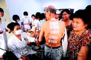 只是治疗辅助手段 近年来很多市民纷纷加入以“三伏贴”治疗慢性病的行列中,但安礼告诉记者:“‘三伏贴’仅仅是疾病治疗的一种辅助手段,不能完全代替其他治疗手段。” 据介绍,近年来有不少急症期病人,也赶到医院要求“冬病夏治”,并寄望于敷贴后能“药到病除”。“这是非常错误的一种做法。”专家提醒,“冬病夏治”不是治疗慢性病的特效疗法,有病史者可以缓解症状和减少发病次数,但绝不是根治性手段,原本正在服药的慢性病患者不要盲目减药、停药。 安礼提醒市民,在炎热的夏天,“三伏贴”使用者在治疗期间应尽量避免开空调,饮食上也需忌辛辣、刺激性的食物。同时,由于“三伏贴”讲究辨证施治,市民应按时到医院让医生根据不同病症贴到不同穴位,从而保证疗效。