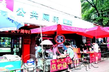 | ▲舜玉路东首的“豪华公厕”门口挂起了眼镜店的招牌。 |  | ▲省城已有几十座飘香公厕,但不少飘香公厕并不香。 |