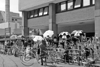| ▲当地时间7月13日,众多媒体在凯特王妃入住的圣玛丽医院外等候“王室宝宝”降生。 东方IC供图 |