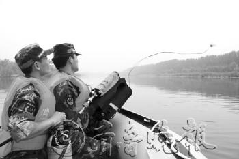 针对近期降雨较多、市区水域水情复杂多变的情况,7月12日,德州市消防支队组织官兵在减河水域进行了水上应急救援演练。图为消防官兵在冲锋舟上发射救生抛投器。 本报记者 马志勇 通讯员 尹岩 摄影报道