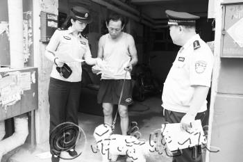 | 惹祸的狗被戴上锁链。(图片由警方提供) |  | 民警向养犬的市民宣传有关法律法规。(图片由警方提供) |