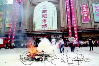 胶州市市场建设服务中心向阳市场管理所开展消防演练,举办消防知识培训班等活动,宣传消防知识,提高业户日常安全用电、防火意识,让业户在实践中学习如何使用灭火器。 (刁鹏 王从起)