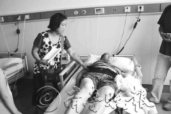 | 躺在病床上的牛丑妮,站在其旁边的是其姐姐郭荣英。 本报记者 孟凡萧 摄