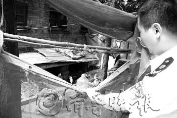 | 执法队员正在拆除鸡舍。王洪磊 摄 |