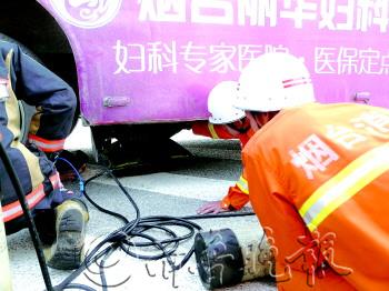 本报热线6610123消息(通讯员 邵犍飞 周政 记者 苑菲菲) 17日上午,一辆207路公交车与一名骑着电动三轮车的中年女子相撞。女子被卷入公交车底,无法动弹。烟台市公安消防支队长江路中队动用起重气垫和叉车,才把女子救出来。 17日上午7点35分,长江路消防中队接警后立刻出动一辆抢险救援车和7名消防人员赶赴现场。在绍兴路和长江路交界处,停着一辆207路公交车,车上已经没有了乘客,交警和120医护人员都赶到了。但是因为车底的女子被困,没办法将她顺利抬出。 消防人员下车后看到,公交车底困着一名50多岁的女子,她的身体被卡在公交车车头下的横梁处,附近还歪着一辆电动三轮车。由于公交车较大,普通的千斤顶和消防液压撑杆根本无法将公交车撑起,消防人员决定用起重气垫试试。起重气垫可用于抢救被重物压困人员、地震后救灾、狭窄空间救援,能起重压力为1吨~71吨。 消防人员在公交车前轮后塞进2个起重气垫,慢慢充入气体,公交车被缓缓抬起了一点。等在现场的120医护人员对被困女子进行了检查。从外表看,女子的右脚踝扭断了,身上有几处擦伤,其他没有发现明显的外伤。在救援过程中,女子的意识还比较清醒,不时跟已经赶来的家人说话。 公交车虽然被抬起一些,但还是无法移动该女子。消防人员一边继续操纵起重气垫对公交车进行撑顶,一边协调附近厂区调来一辆叉车。双向努力下,公交车车头终于被抬起,救援人员钻入车底,将女子小心地挪出来抬上担架,并送往医院抢救。 记者试图询问事发原因,但驾驶公交车的是一名30多岁的男子,事故发生后受到了惊吓,说话语无伦次,无法正常回答提问。目前,事故原因相关部门仍在调查之中。