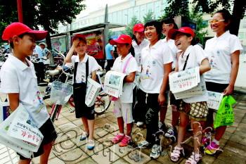 17日,小报童张皓程与大家分享卖报经验。2013齐鲁晚报“SM淄博淄川城市广场杯”小报童暑期营销秀活动进入第三天。小报童们经过前两天的历练,积累了一些卖报经验。分享与合作才能共赢,在卖报之余,不少小报童主动聚集在一起,交流“生意经”。 本报记者 王鑫 摄影报道