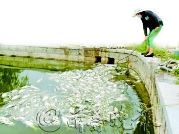 本报聊城7月17日讯(记者 孟凡萧) 16日,新西环天福陵园的叶经理致电本报反映,一场大雨过后,园区的20亩池塘水面漂满了死鱼,他怀疑是大雨冲刷附近环卫处露天晒粪干场污水流入池塘所致。环卫处一工作人员表示,环卫处只是将粪便拉到晒粪干场卸车,后期晒粪干场的管理并不由环卫处负责。 16日上午,记者来到这个鱼塘,看到水面上还漂着不少死鱼,工作人员正在打捞死鱼。最大的鱼有六七斤重,还有不少小鱼。由于腐烂,鱼塘附近散发出阵阵臭味,打捞上的死鱼身上布满苍蝇。“现在水面上的死鱼少了不少,昨天被附近村民给捞走了。”一正在打捞死鱼的工作人员说。 叶经理说,14日早晨7点多,他发现死鱼后拨打了12369环保热线,东昌府区环保局工作人员来查看了现场,并取走了水样进行化验。“鱼塘里有鲤鱼、草鱼、鲢鱼和螃蟹,以鲢鱼为主。”叶经理说,这些鱼都是两年前放养的,主要用于钓鱼休闲娱乐。这次水污染,让他损失不少。“当时买鱼苗就花了两万多块钱。” 据了解,鱼塘东西两侧各有一个进水口,以西侧进水口为主,东侧进水口不常用。西侧引西新河的黄河水入鱼塘,鱼都是天然野生的。同时,鱼塘也是一个天然蓄水池,灌溉季节,农民也在此引水灌溉。“东侧的进水口与一条干渠连接,干渠内有不少污水。”叶经理说,前两天大雨,污水从东侧进水口进入鱼塘。 东昌府区环保局一工作人员表示,接到反映后,他们立刻派工作人员到现场查看情况,发现在鱼塘附近有环卫处晒粪的地方,晒粪干场是露天的,经雨天大雨冲刷,污水通过干渠流入了鱼塘。工作人员在查看情况的时候也遇到了往此处送粪的车辆。工作人员提取了鱼塘水样,但正式的鉴定报告还没出来。 据东昌府区水产局渔政站一工作人员介绍,渔政站已经到现场查看情况,将据鱼塘面积、鱼苗种类评出鱼塘的产量,同时,根据市场平均价格核算损失。 7月17日上午,市环卫处清运队一工作人员表示,晒粪干场不归环卫处管理。“村里的一位村民向环卫处提供一个卸车的场地,环卫处将粪便拉到此处卸车,后期晒粪干场的管理并不由环卫处负责。