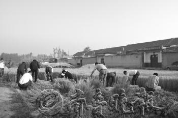 | 6月14日,沂水县委办公室35名工作人员来到沂城街道燕家庄村,给一户受伤的村民收麦子。 田宝宗 摄